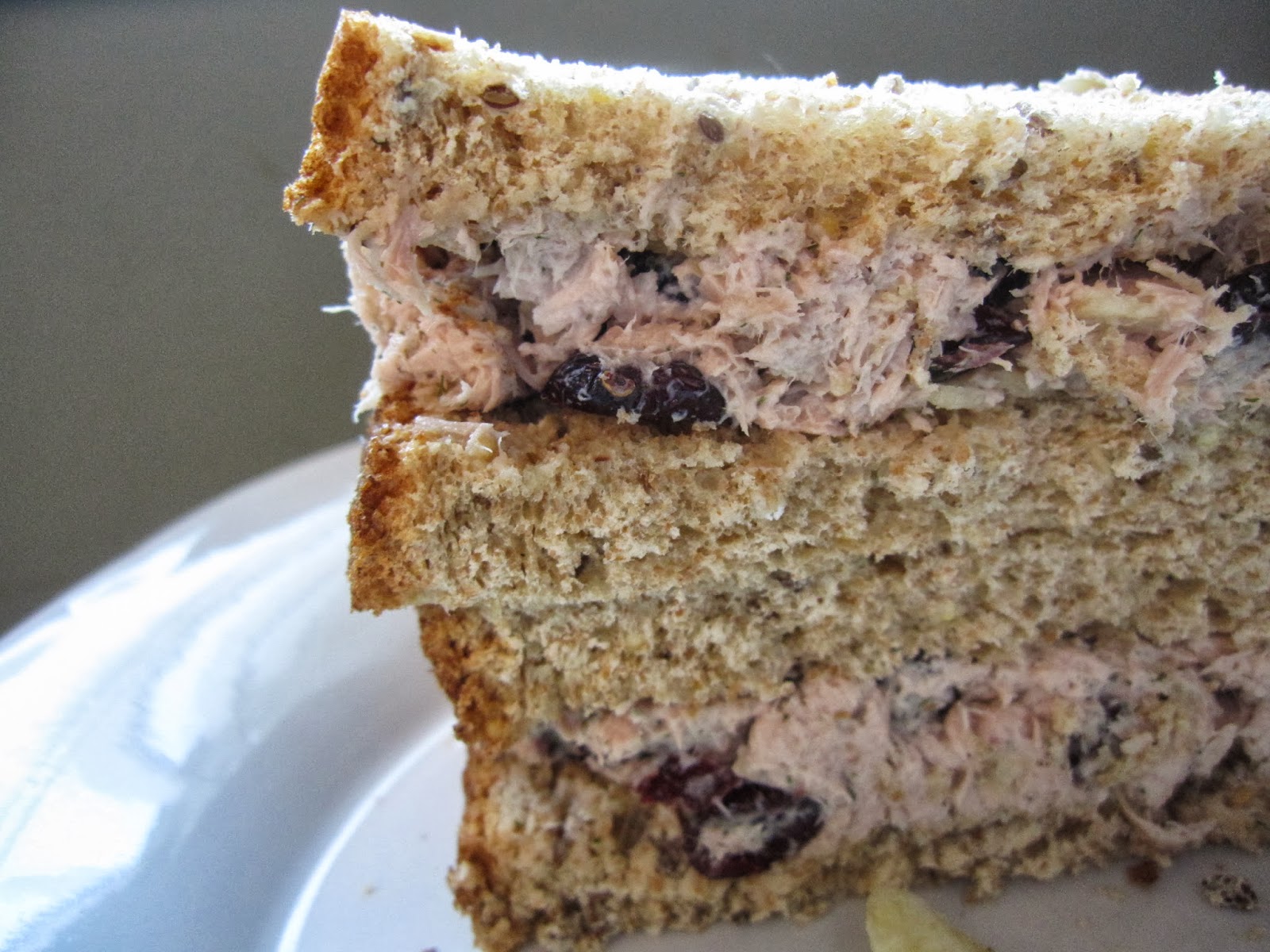 I like the idea of using cranberries in the tuna filling. The sandwich looks very tasty.