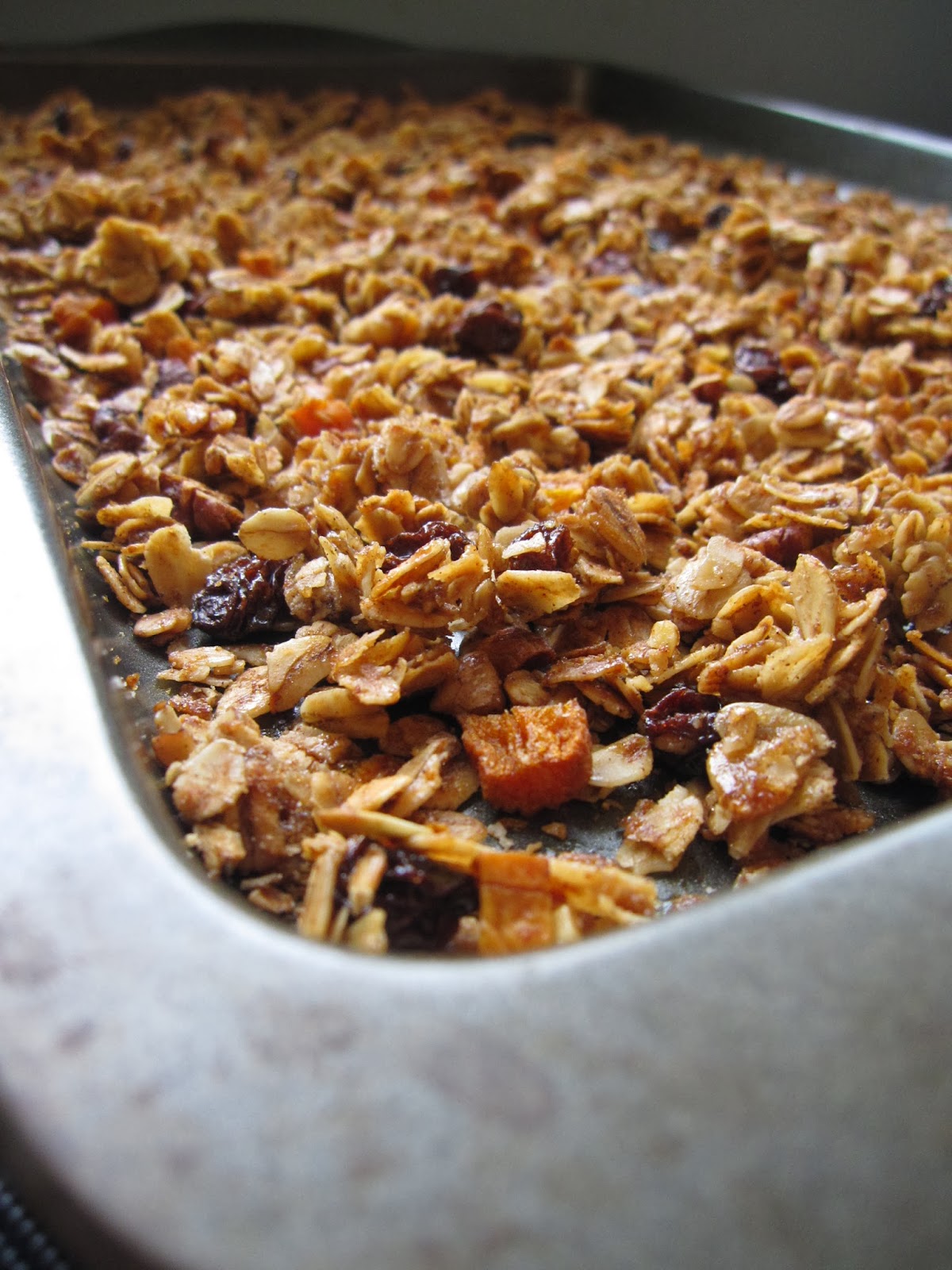 This was a throw all the dried fruit and nuts that need using into a baking sheet and hope it tastes good kind of recipe. And guess what? It totally works.