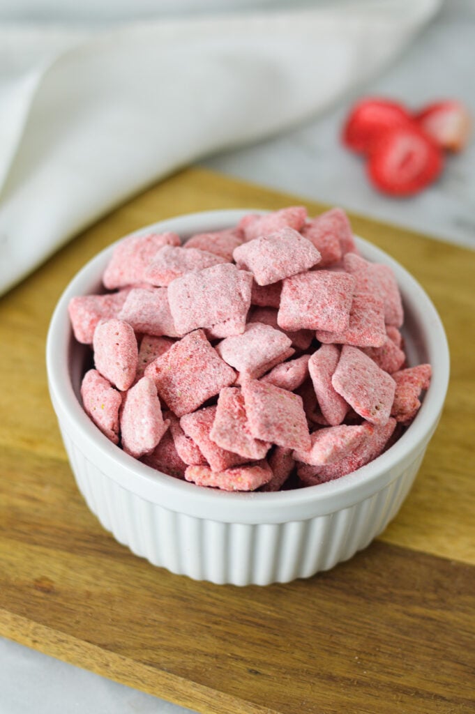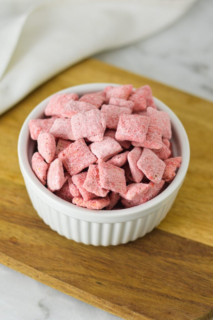 Storage: Store these strawberry muddy buddies in an airtight container at room temperature for up to 1 week.